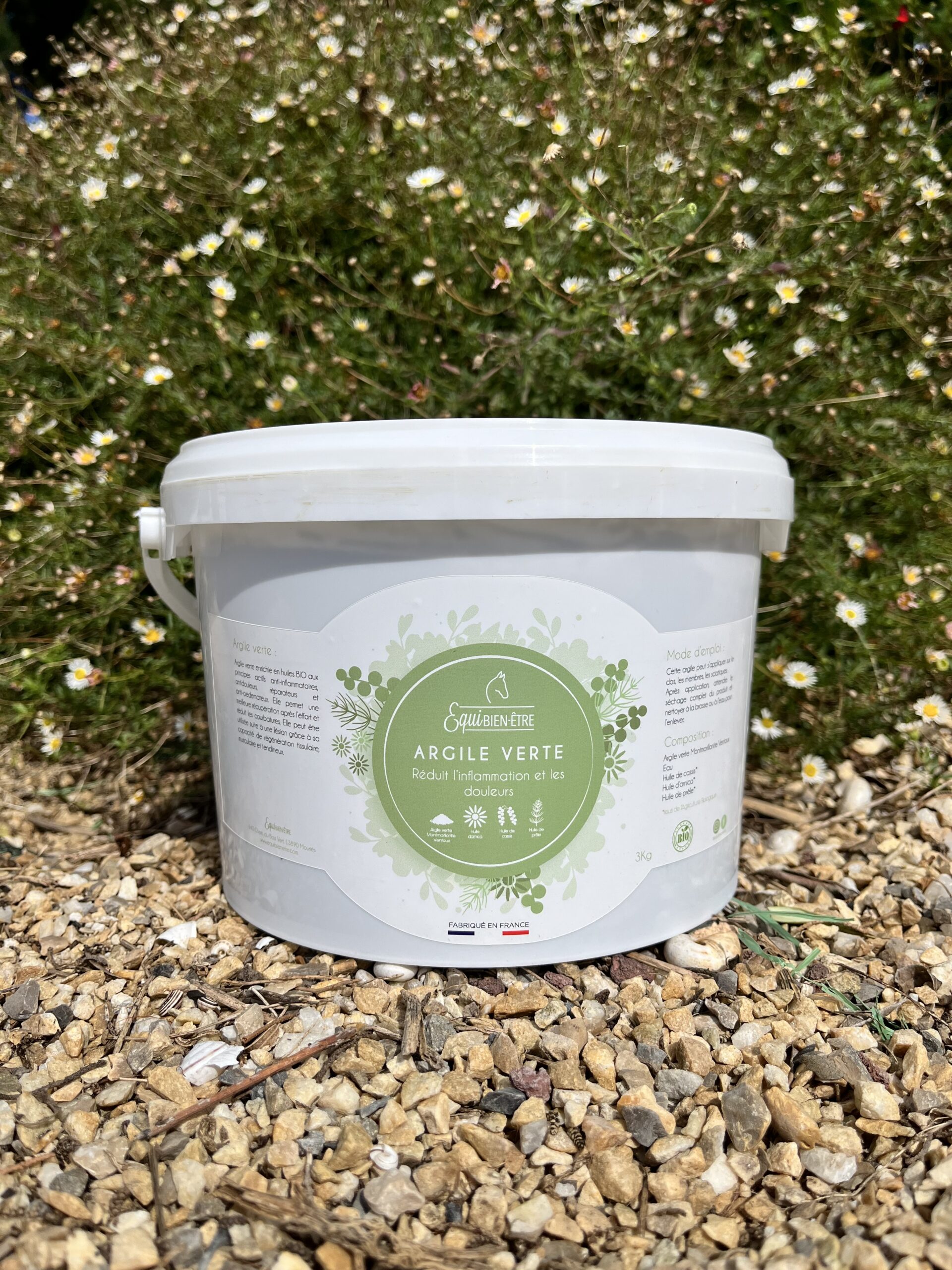 | Composition | Argile verte Montmorillonite du Ventoux / Arnica/ Prêle/ Cassis/ Huile Végétale / Huile essentiel Tea-Tree, Lavande |