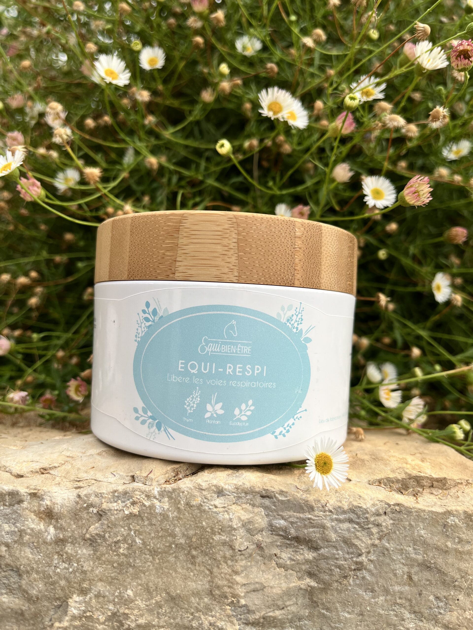 Ce baume de chez Equi Bien-Être aux concentrés de plantes Bio grâce à une action bronchodilatatrice, expectorante et adoucissante.