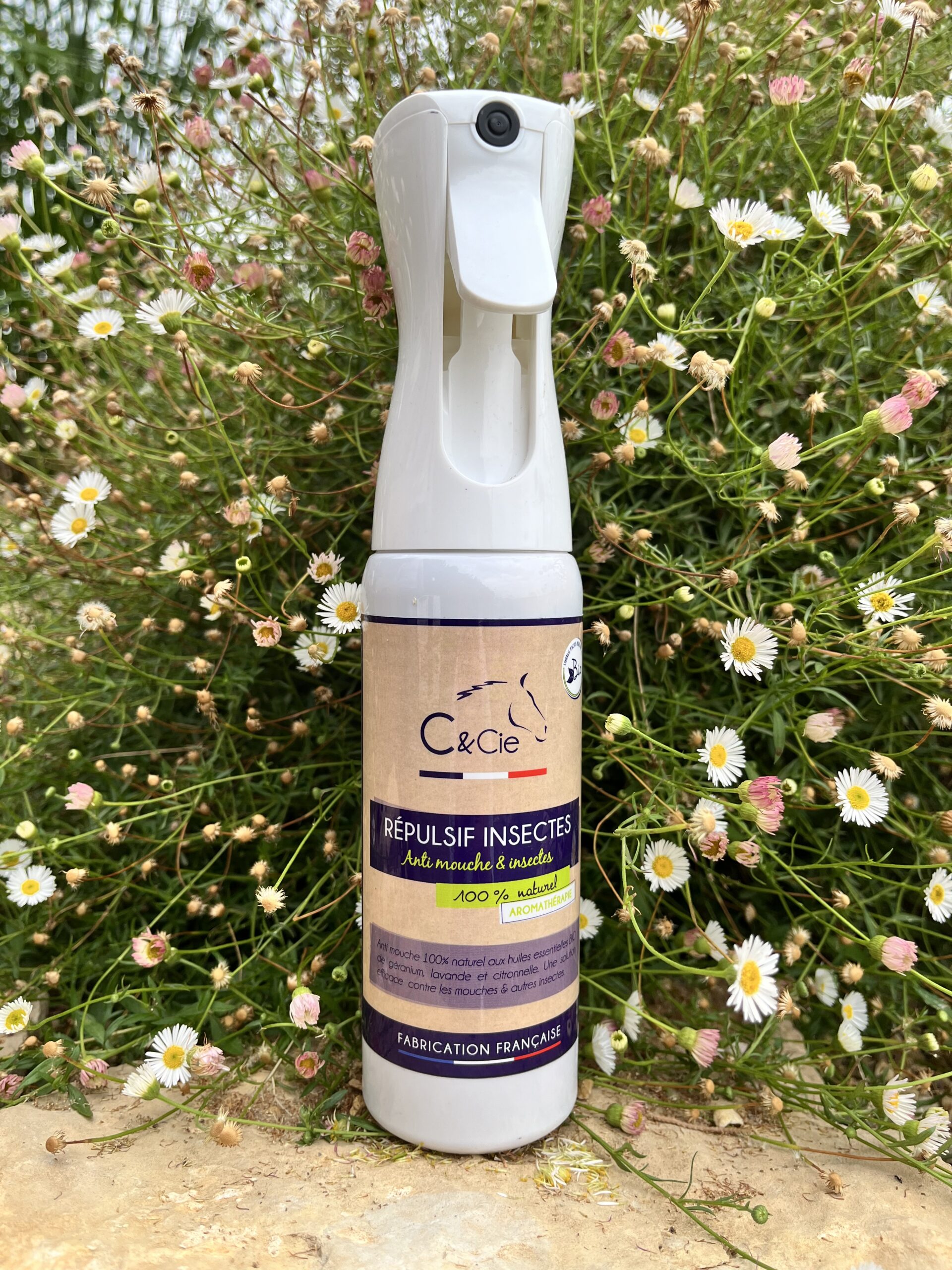 Anti Mouche Cheval Naturel, le Répulsif Insectes de chez C&Compagnie protège le cheval des agressions et piqûres d’insectes volants : mouche, tique, moucheron, moustique, poux, acariens & autres bestioles …